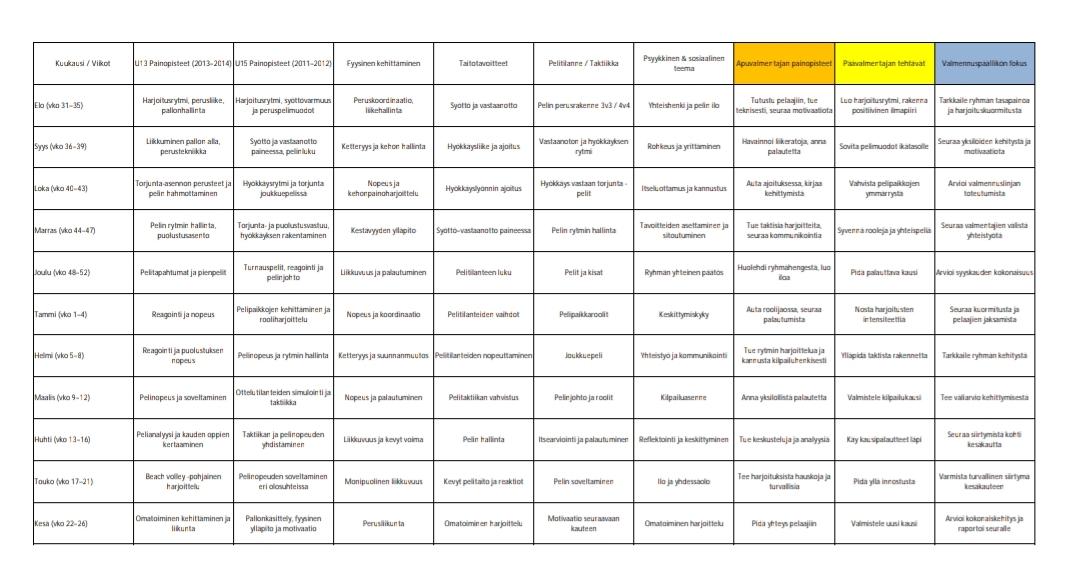 Loisitko juniorilentopalloon ikäluokkiin vuosisuunnitelman jokaiselle ikäluokalle.