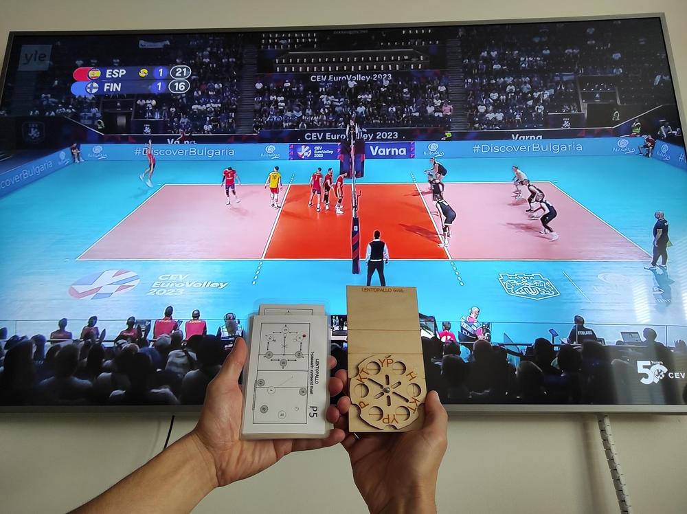 Lentopallokiekko on oppiväline junioreille ja valmentajille 6vs6 1-passarin systeemin opetteluun. Vaihtoehtoinen perinteisempi tuote mobiililaitteille tuotetulle oppimateriaalille.